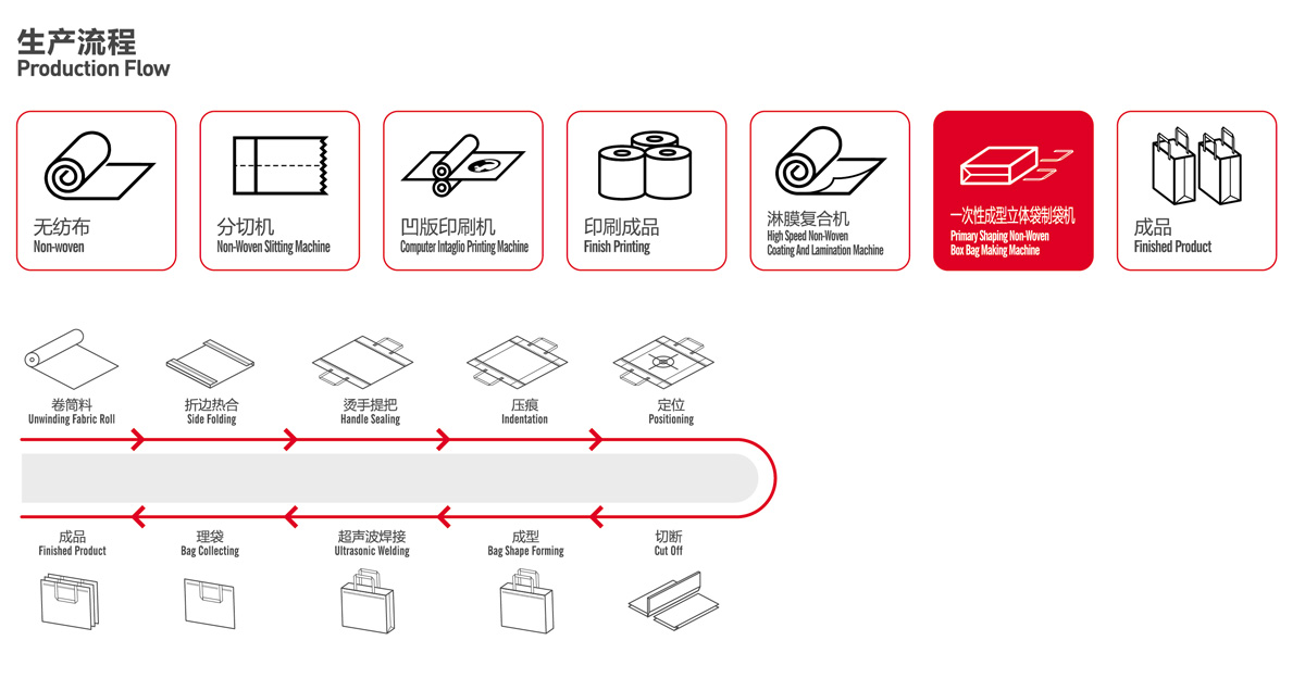 該機適用于原材料為無紡布,覆膜無紡布,專業(yè)生產一次成型覆膜的立體袋(免翻),設備生產穩(wěn)定,袋子熱合部位牢固,美觀、大方,可反復利用,主要用于生產無紡布煙、酒包裝袋,無紡布飲料包裝袋,禮品袋,酒店廣告袋等無紡布袋,該機集機電為一體,運用LCD觸摸屏操作。配以步進步式定長,光電跟蹤,電腦自動定位,電腦自動糾邊,準確,平穩(wěn),自動計數,即可設定計數報警,自動燙把手,自動疊袋等工控裝置。